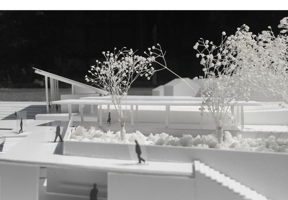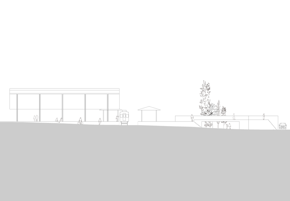 京都市の西に位置する松尾という土地は、松尾山と桂川に挟まれた土地で、神社や、駅、住宅、大学がある街である。しかし駅前は狭く、学生が電車を待つ間おしゃべりをしたり、観光客が休憩したり、主婦が井戸端会議する場が無い。そこで駅舎を建て替え、駅前に新しく広場を生みながら、鳥居と駅舎、桂川といった景色が一度に感じられる場を生み出すことを考えた。この広場によって、松尾ならではの多様な人の集まりが景色として現れる。